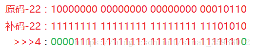 “无符号”右移>>>采用0扩展机制无论值的正负,都在高位补0