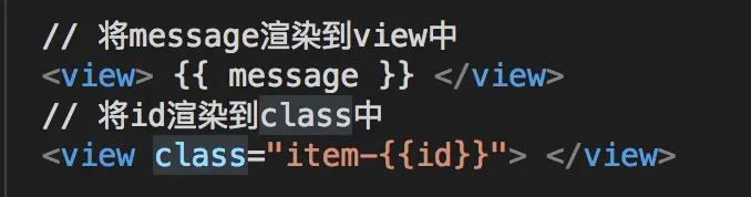 数据绑定使用 Mustache 语法(双大括号)将变量包起来,类似Vue的绑定方式,具体可见下图: