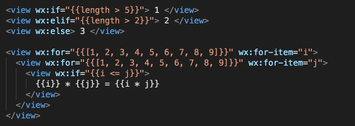 在组件上使用 wx:for 控制属性绑定一个数组,即可使用数组中各项的数据重复渲染该组件,默认数组的当前项的下标变量名默认为 index,数组当前项的变量名默认为 item,也可以通过wv:for-item自定义item名,注意这里的条件渲染不能像我们常用的for循环那样使用,具体用法见下图: