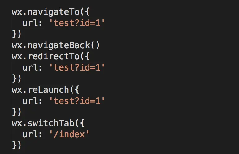 导航在我们的代码里会经常使用,小程序导航的主要方法有一下几个: