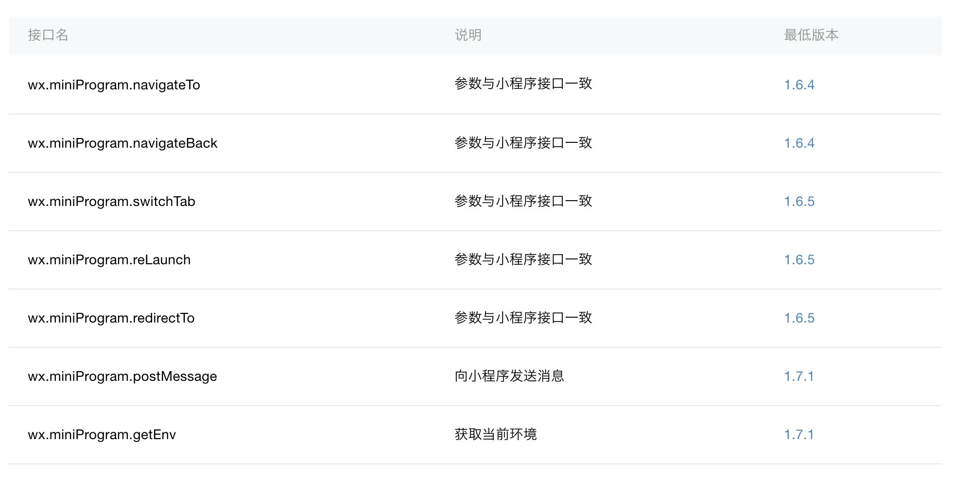 <web-view/>网页中可使用JSSDK 1.3.2及以上版本提供的接口调用微信的api,支持主流JS SDK方法,并且同时也可以调用部分小程序api,具体可调用接口如下: