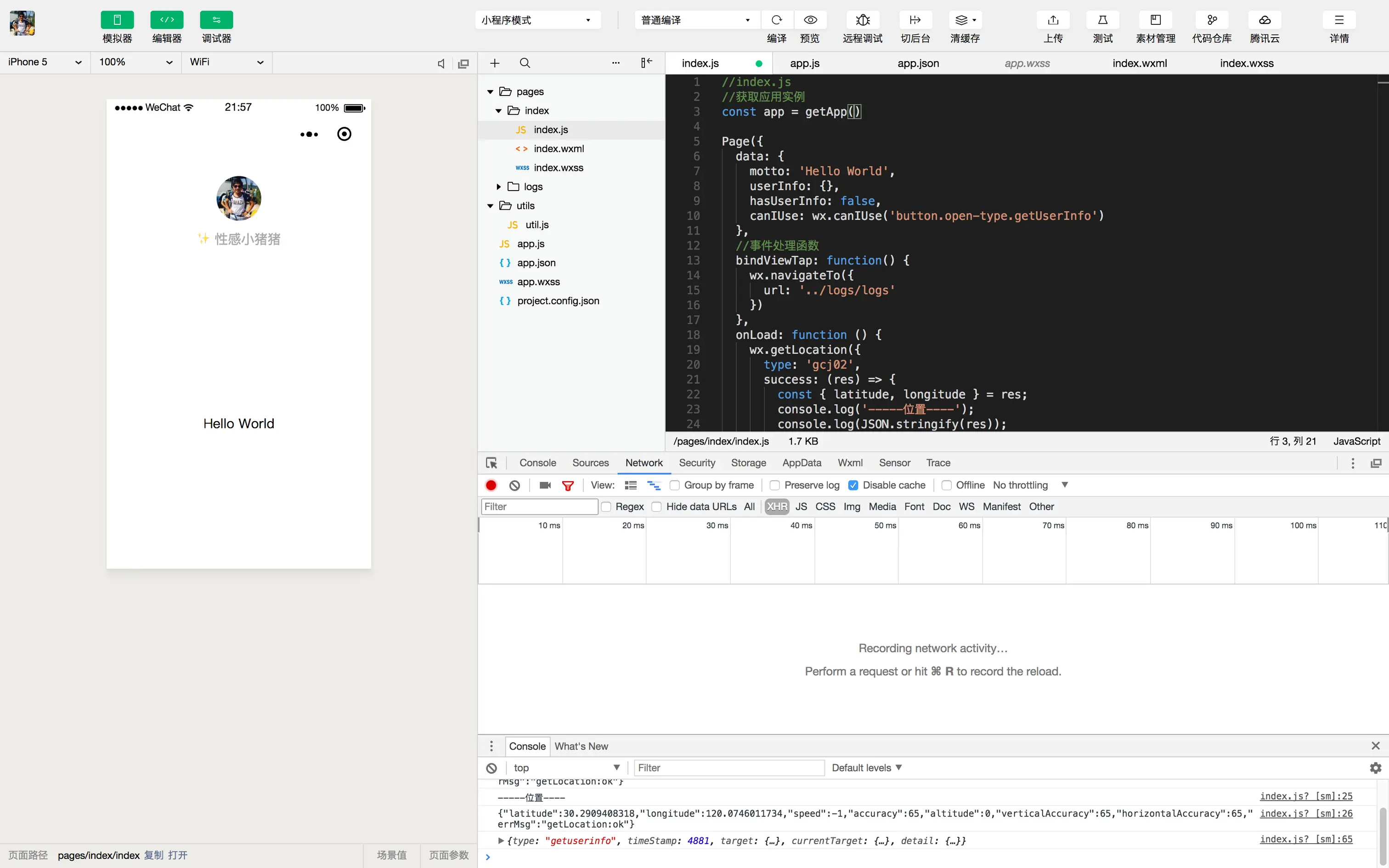 为了帮助开发者简单和高效地开发和调试微信小程序,微信官方在原有的公众号网页调试工具的基础上,推出了全新的 微信开发者工具,集成了公众号网页调试和小程序调试两种开发模式。大体界面长这样: