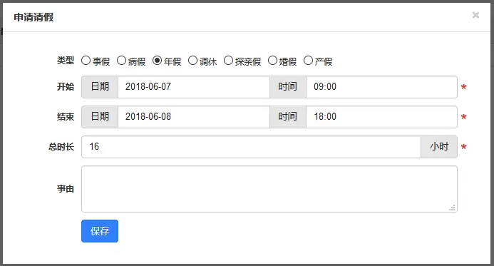 (请假申请界面)
