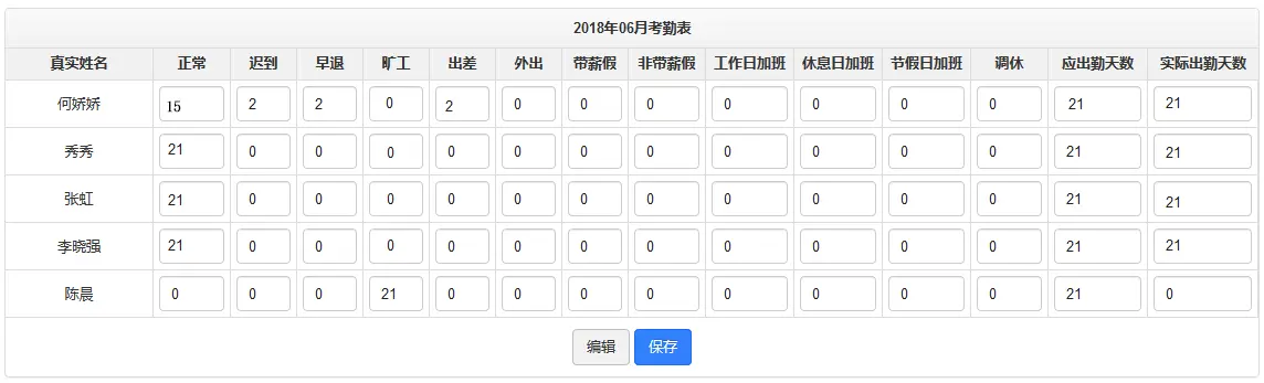 (考勤表)