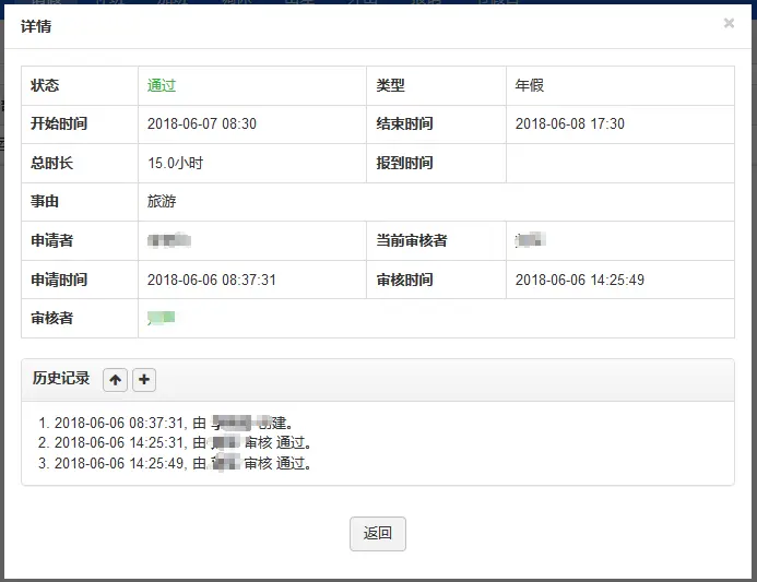以请假为例,只需在系统中提交请假申请,相关负责审核人员登陆系统就能收到此申请,点击审核通过/拒绝就可以。