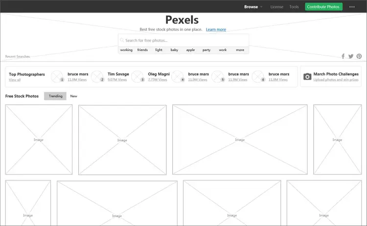 6. Pexels - 图片素材类网页设计模板