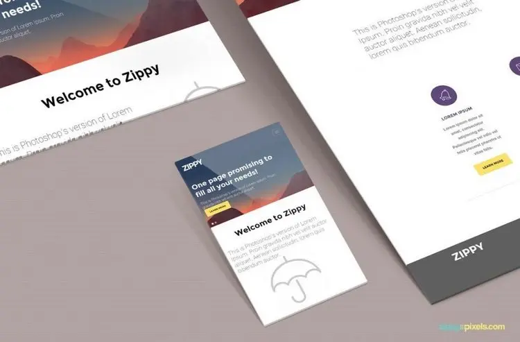 拥有透视效果的网站设计模型可以让你从不同角度展示你的设计布局,让你的设计看起来更像真实的产品,而不是静态的模型。