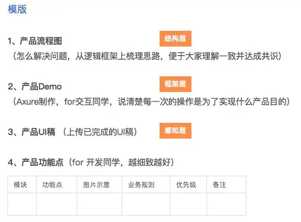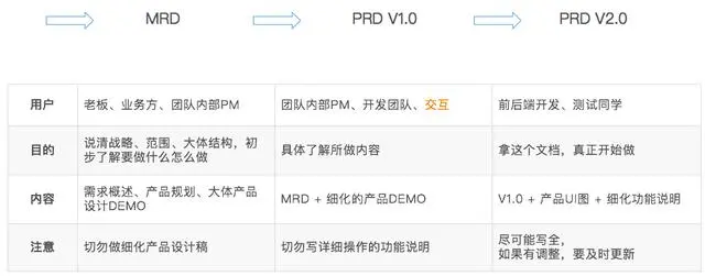 - 及时更新:功能、DEMO的调整,都需要落到PRD上。