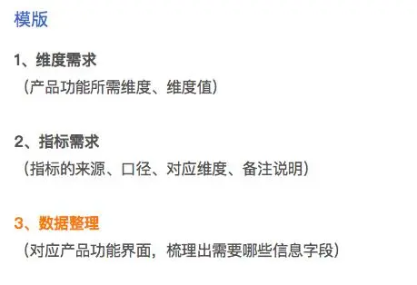 因为我本人是数据产品的产品经理,所以这一部分对于我们很重要,需要哪些维度、哪些指标,指标的来源库表字段、计算口径是什么,这些都要清晰地记录下来。