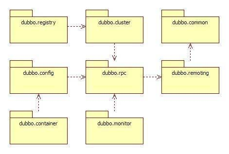 Dubbo以包结构来组织各个模块,各个模块及其关系,如图所示: