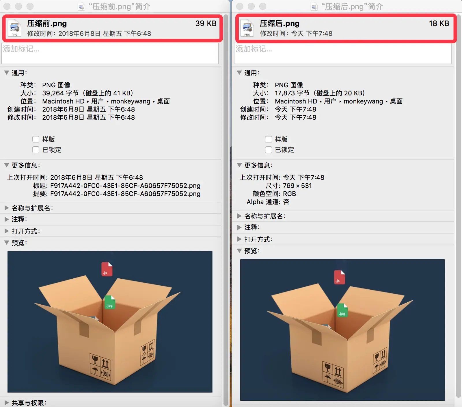 压缩前后体积对比(图片压缩完成已自动上传到指的CDN):