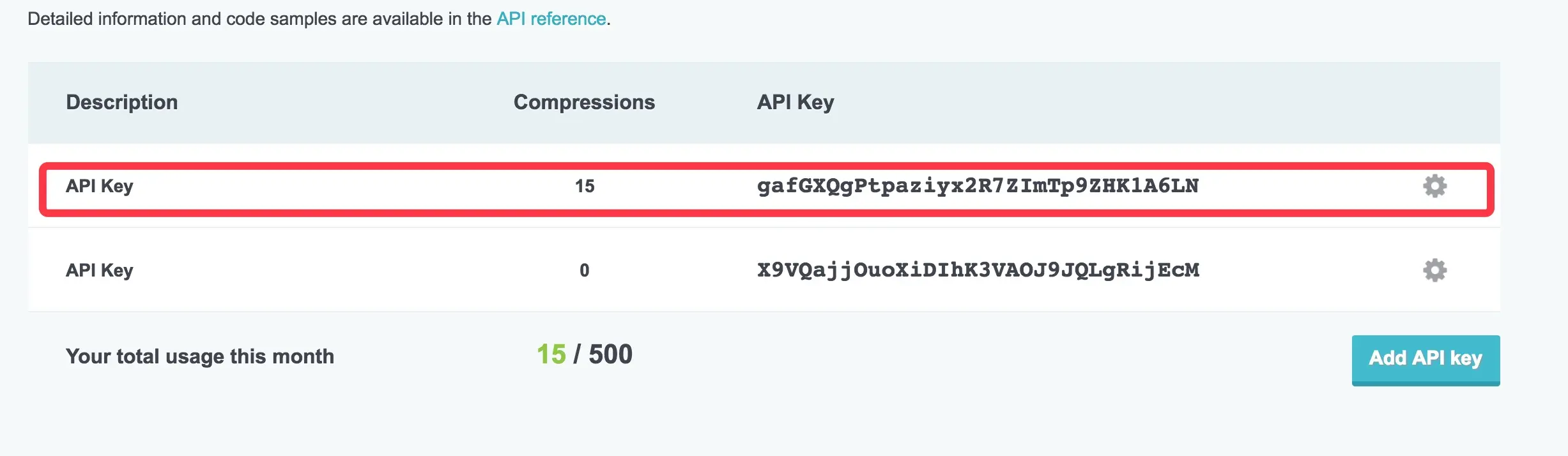 只不过有一点限制,免费的每个月可以压缩 500 张图片。github 上也有人通过循环注册的过程,生成了多个账户API key达到近似于不限制压缩次数的目的。有兴趣也可以了解一下~
