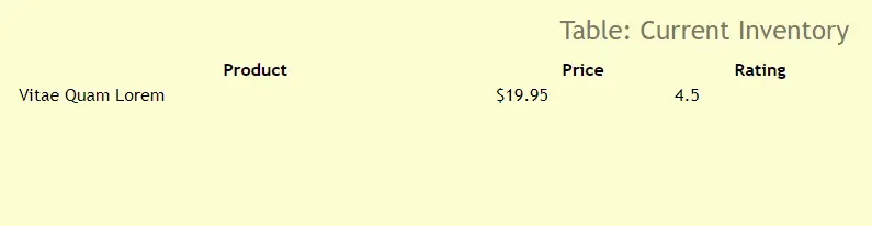 假设一个简单的需求:创建一个展示库存(inventory)的表格。那么,首先就是用HTML写好整个表格框架了。