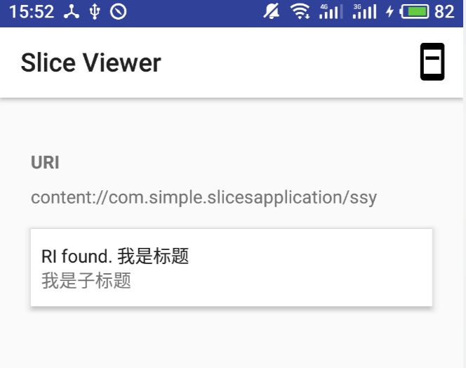 这样我们我们就完成了一个简单的Slice,什么?怎么用?下载这个slice-viewer.apk充当Google Assistant吧,然后我们需要做的是adb shell am start -a android.intent.action.VIEW -d slice-content://com.simple.slicesapplication/ssy