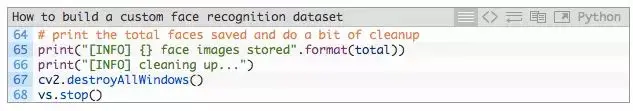 接下来,我们使用一个简单的 Python 脚本构建自定义人脸识别数据集。这个 Python 脚本可以完成以下任务: