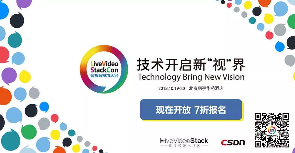 LiveVideoStackCon 2018是音视频技术领域的综合技术大会,今年是在10月19-20日在北京举行。大会共设立18个专题,预计邀请超过80位技术专家。如果你在某一领域独当一面,欢迎申请成为LiveVideoStackCon 2018的讲师,让你的经验帮到更多人,你可以通过speaker@livevideostack.com提交演讲信息。了解大会更多详情,点击【阅读原文】访问LiveVideoStackCon 2018官网,报名即刻享受7折优惠。