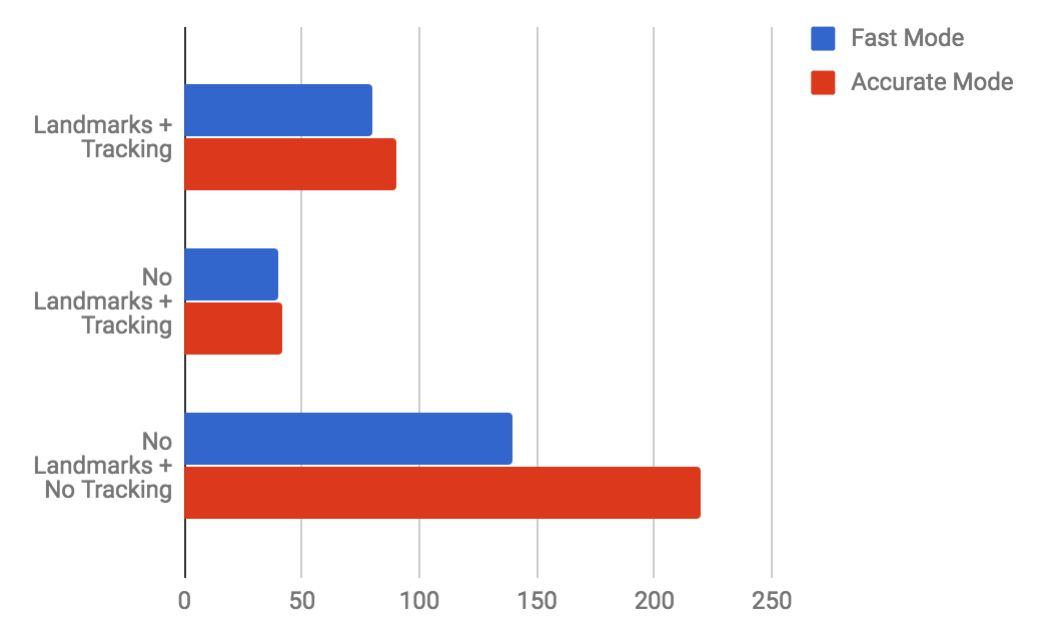 最后我们聊聊准确性。我们注意到的第一件事情是即使在快速模式下配置ML Kit时,面部检测的准确程度也是如此。 我们的测试是在一个典型的移动/桌面视频会议设置中完成的,人在看相机,没有任何物体阻挡它。 在其他情况下,检测会更加不可靠,并且不是很有用。 ML Kit也支持在图像中检测多个面,但我们没有进行太多的测试,因为它在我们应用程序的使用中并不常见。