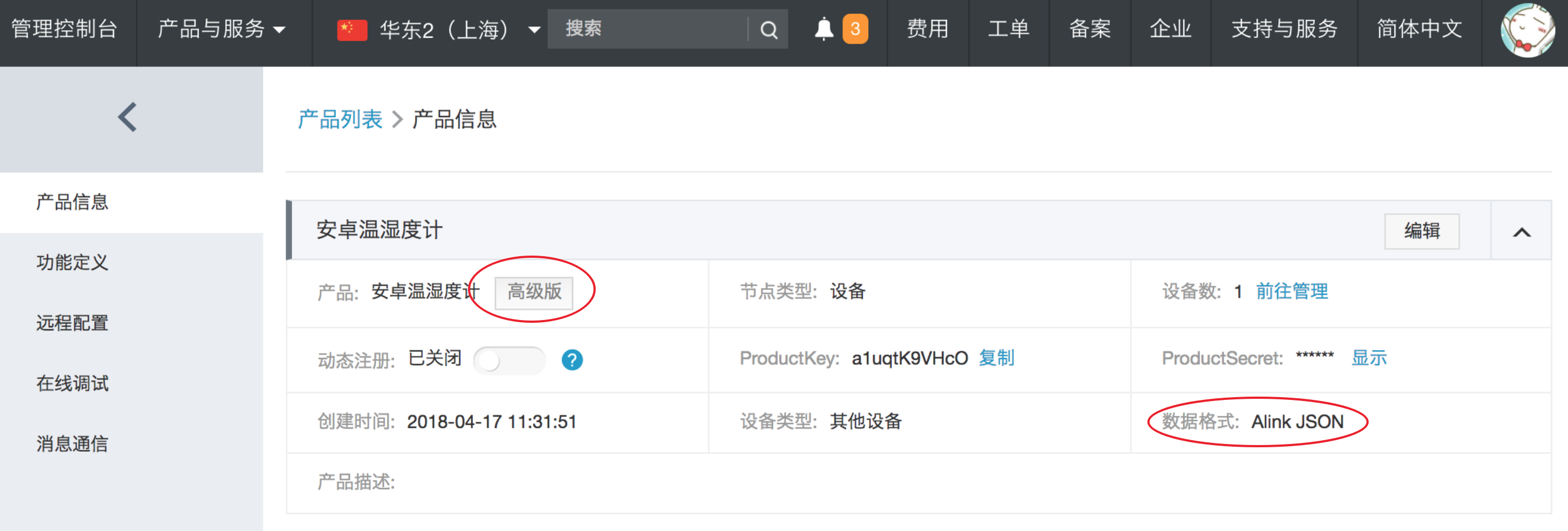 - productKey: "替换自己productKey",