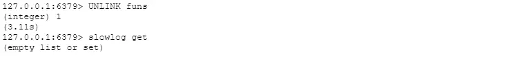 可以看到UNLINK执行很快没有产生slowlog。