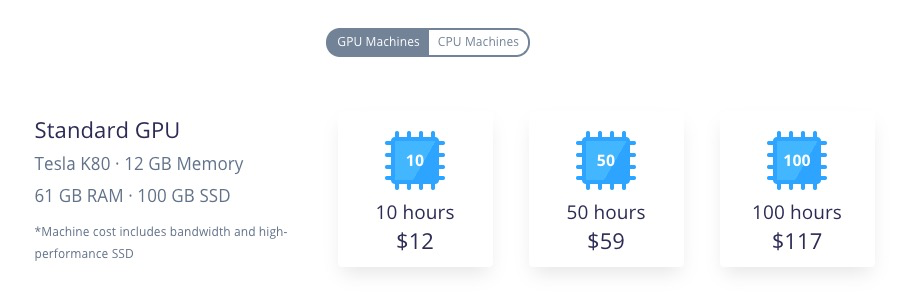 《如何用云端 GPU 为你的 Python 深度学习加速?》提到的 FloydHub,租赁一个小时,大概需要1美元左右。注册账号就赠送你2个小时;