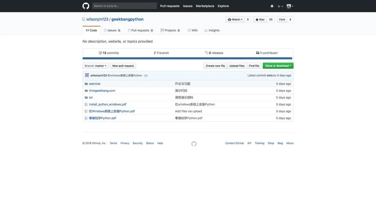 《零基础学 Python》课程对应的 github 项目链接在这里(t.cn/R1TGsnK)。
