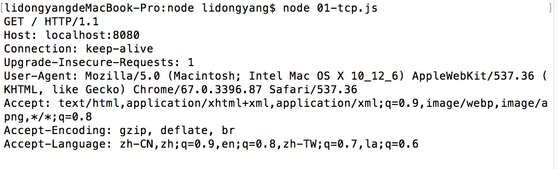- 我们在terminal中看到了请求头