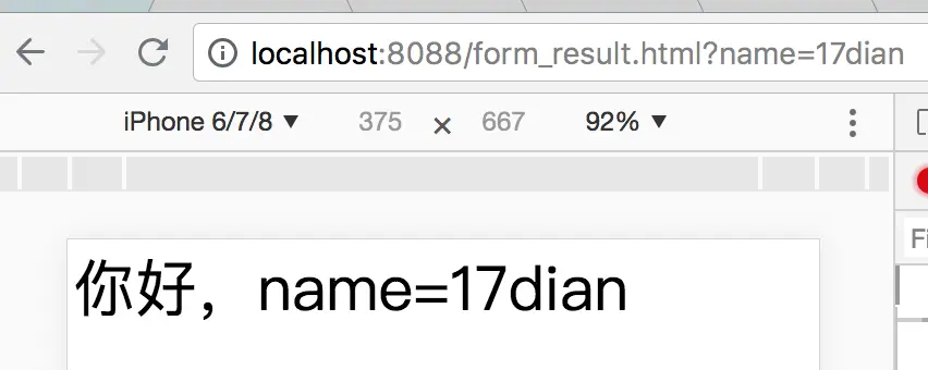(1)我们首先分别用get 和 post 写一个表单提交,让其点击都跳转到form_result.html,有一行你好,name