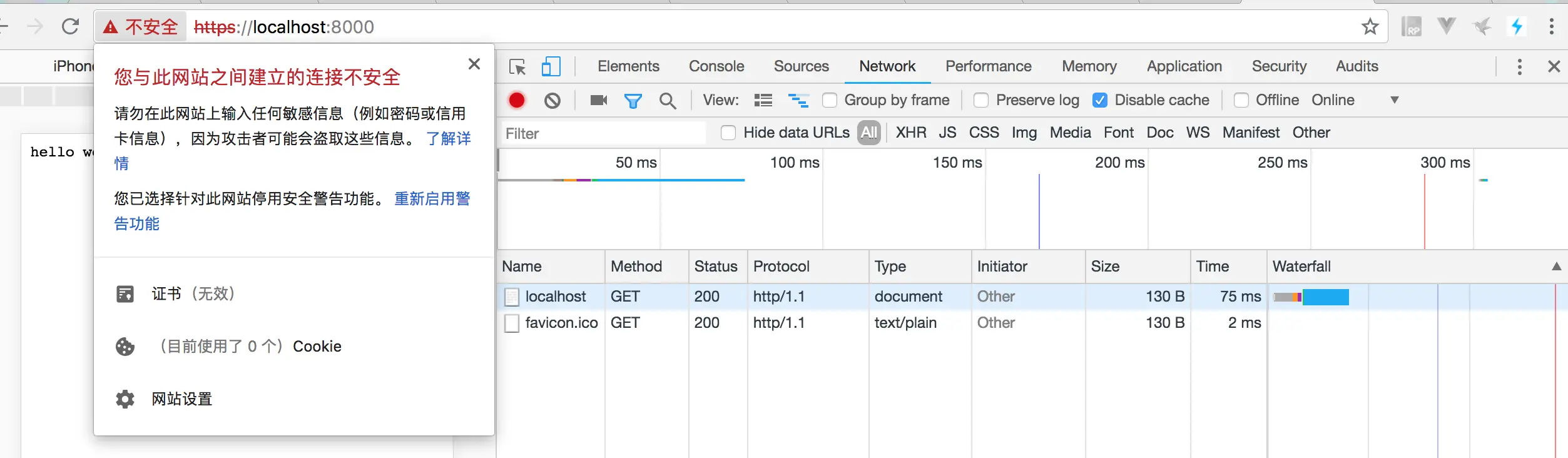服务器访问: https://localhost:8000/