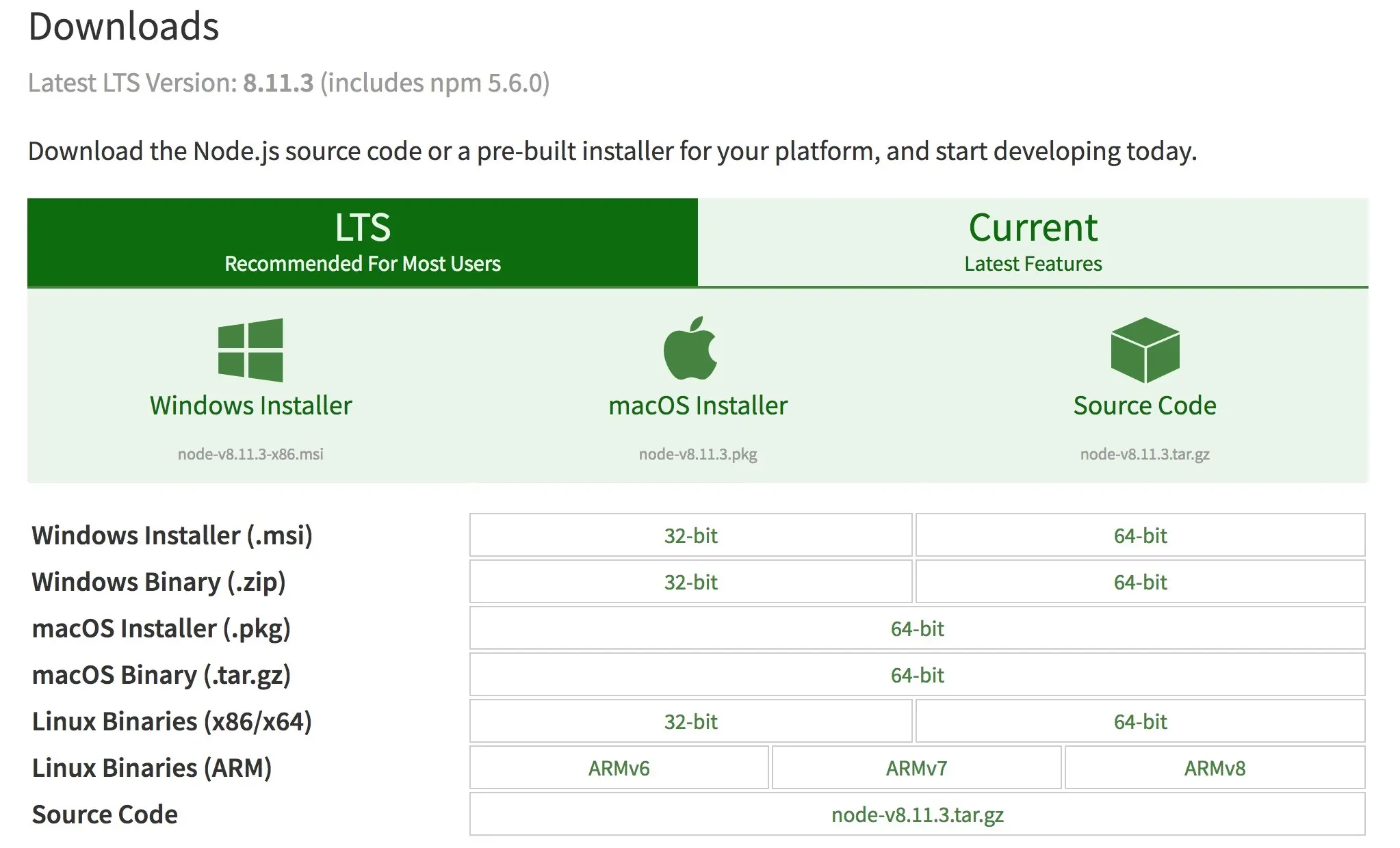 在搭建vue环境之前一定要先下载node.js,vue的运行是要依赖于node的npm的管理工具来实现,大家可以根据自己的电脑系统来选择自己要安装的版本