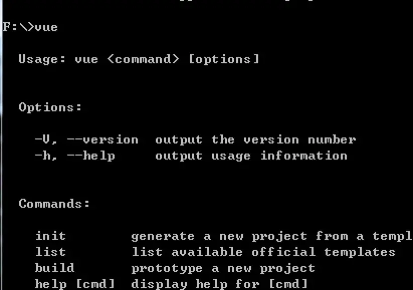 验证是否安装成功,在命令输入vue,出来vue的信息,及说明安装成功;