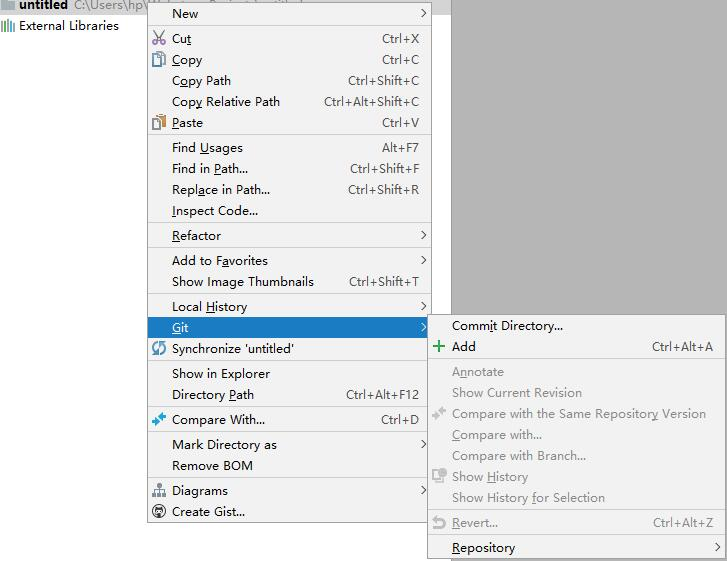 vcs第二行,点下弹框,选git勾选上,在点右键会出现git属性