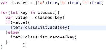 第二步:用for..in方法遍历这个数组,if语句判断执行classList.add还是classList.remove。