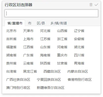 <v-region class="form-control"></v-region> // 显示省市区
