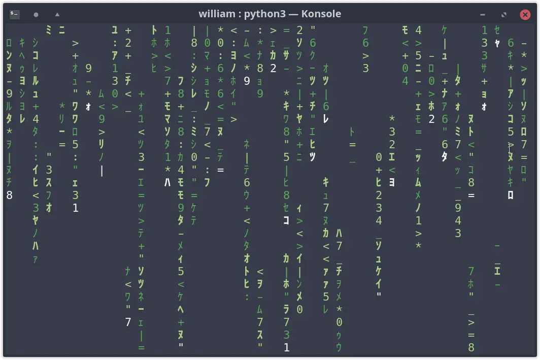13、unimatrix:模拟“黑客帝国”影片中的终端动画脚本