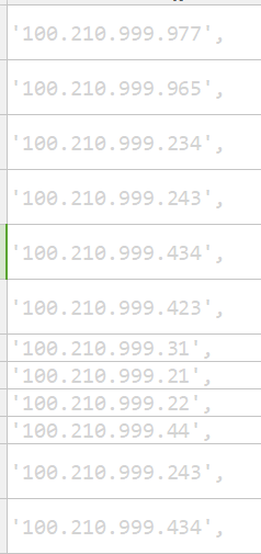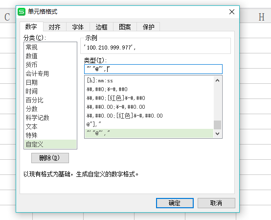 简单操作,用excel或者vscode为多行数据添加格式 qylcx7758 2018-06-28 1,952 阅读1分钟 需要更改多行数据的格式,方便之后的脚本操作等等,可以用这样子的方法,例如:这里是多行ip,类似:192.168.1.1等,结果格式如下,需要将每行转换成"192.168.1.1"。操作流程:多选中每一行数据,右键选择选择单元格格式栏,选择数字>分类>自定义,将类型修改成 "'"@"'," 这里的@代指每一行被选中的数据,结果如下:将上述格式用VSCode来转换写法,注意要额外添加首尾格式