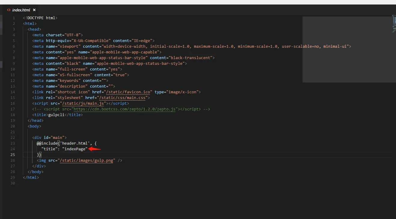 .pipe(fileinclude({
