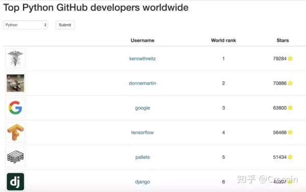 他叫 Kenneth Reitz。现就职于知名云服务提供商 DigitalOcean,曾是云计算平台 Heroku 的 Python 架构师,目前 Github 上 Python 排行榜第一的用户。(star 数超过了包括 google、tensorflow、django 等账号)