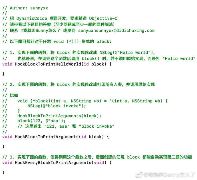 但是第二题,第三题实在搞不定,尝试过使用method swizzling去替换NSBlock中的- (void)invoke方法,方法能替换但是Block不会调用。不知道有没有大神能帮忙解答下这几个问题