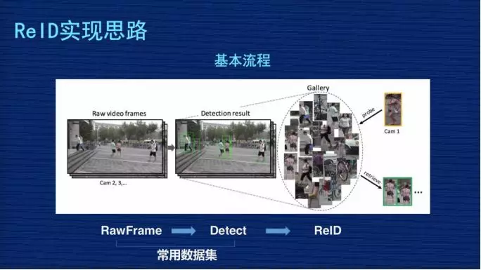 再来看一下 ReID 实现思路与常见方案。ReID 从完整的过程分三个步骤: