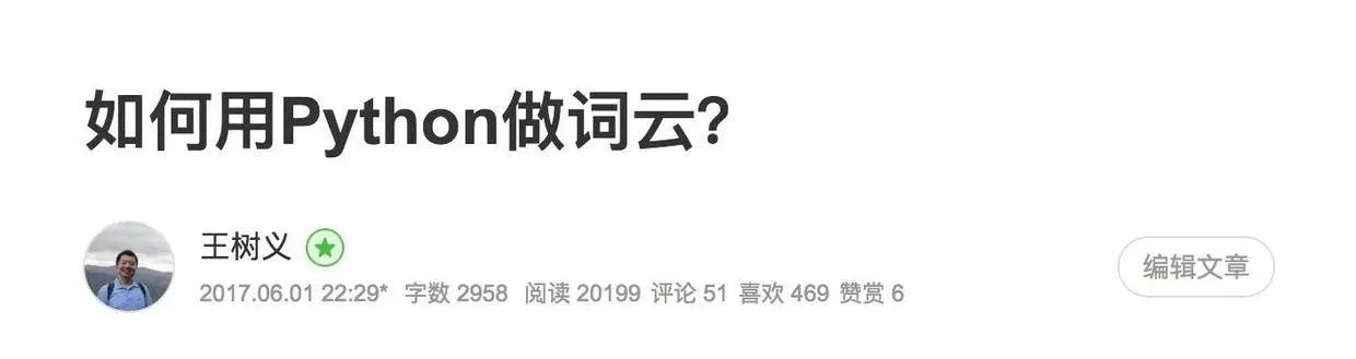 《如何用Python做词云?》图文版发布于2017年6月,是我数据科学系列教程中的第一篇。