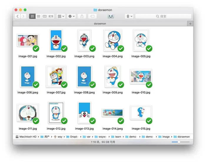 image目录内容,就是你之前在《如何用Python和深度神经网络寻找近似图片?》一文中已经见过的哆啦a梦和瓦力的图片。