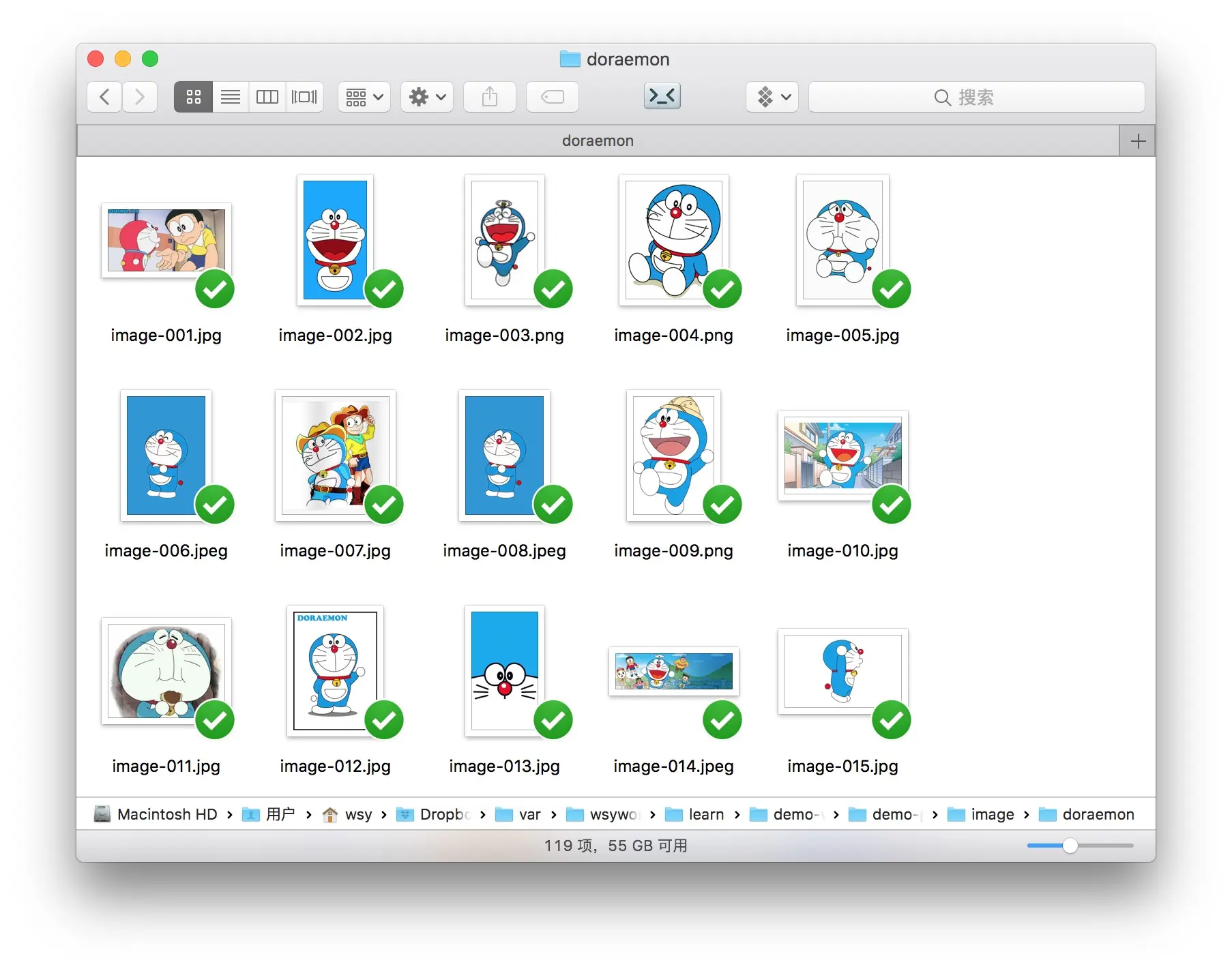 打开其中doraemon的目录,我们看看都有哪些图片。