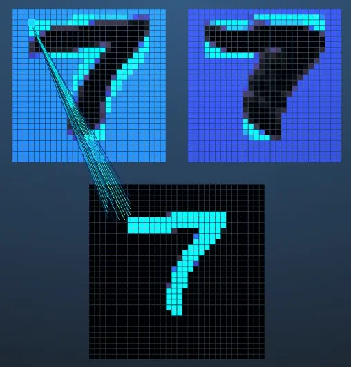 同理,在第一个Max pooling层上悬停,电脑也可以可视化展示给我们,该像素是从哪几个像素区块里抽样获得的。
