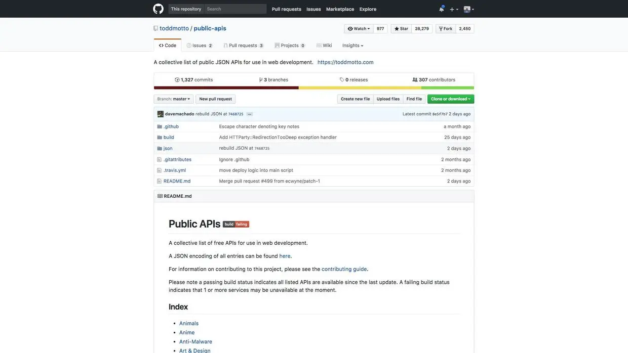 这个github项目里,有一份非常详尽的列表,涵盖了目前常见的主流网站API资源状况。作者还在不断整理修订,你可以把它收藏起来,慢慢看。