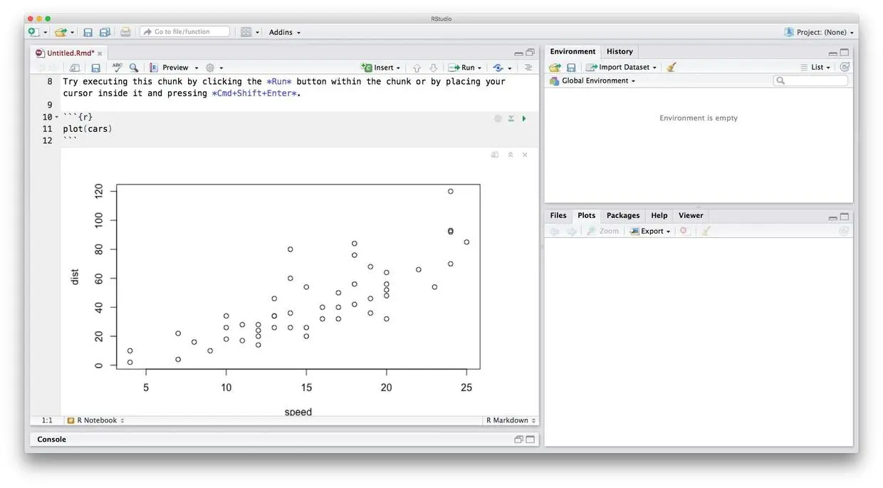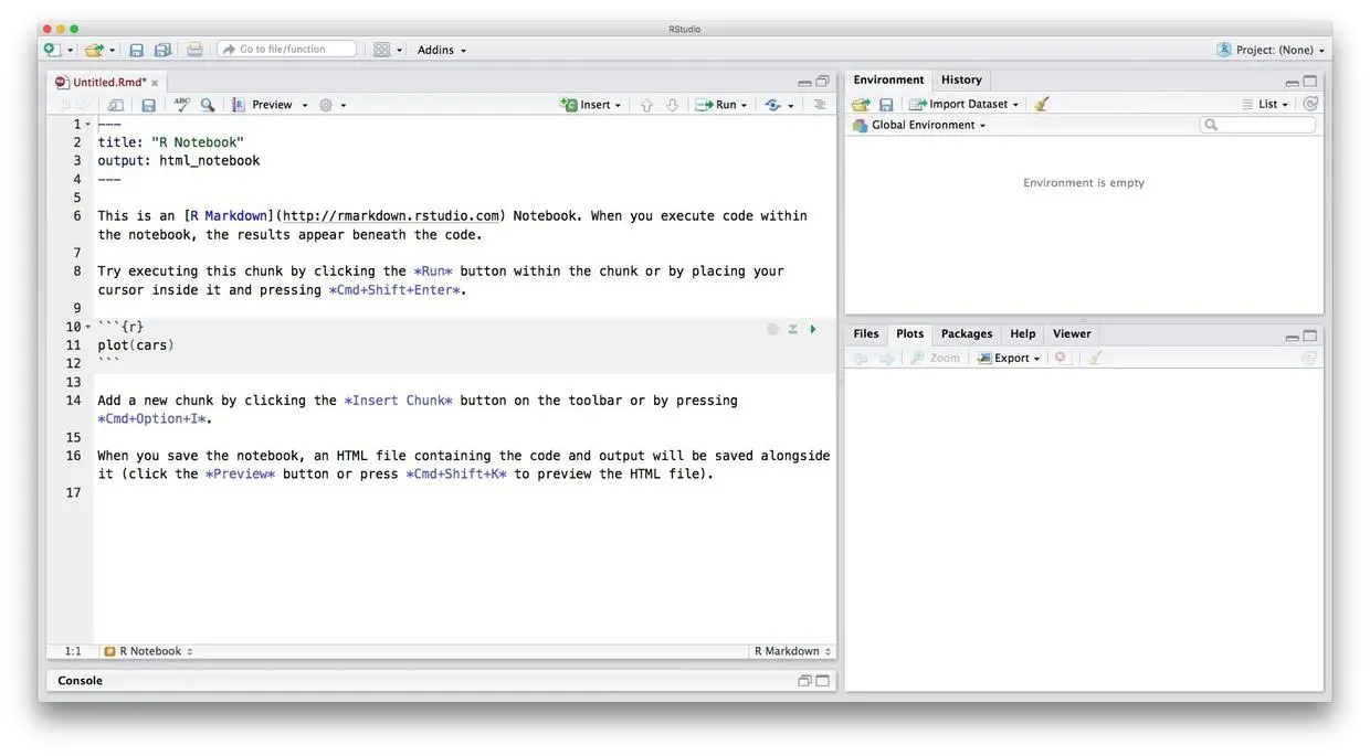 R Notebook默认提供给我们一个模板,附带一些基础使用说明。