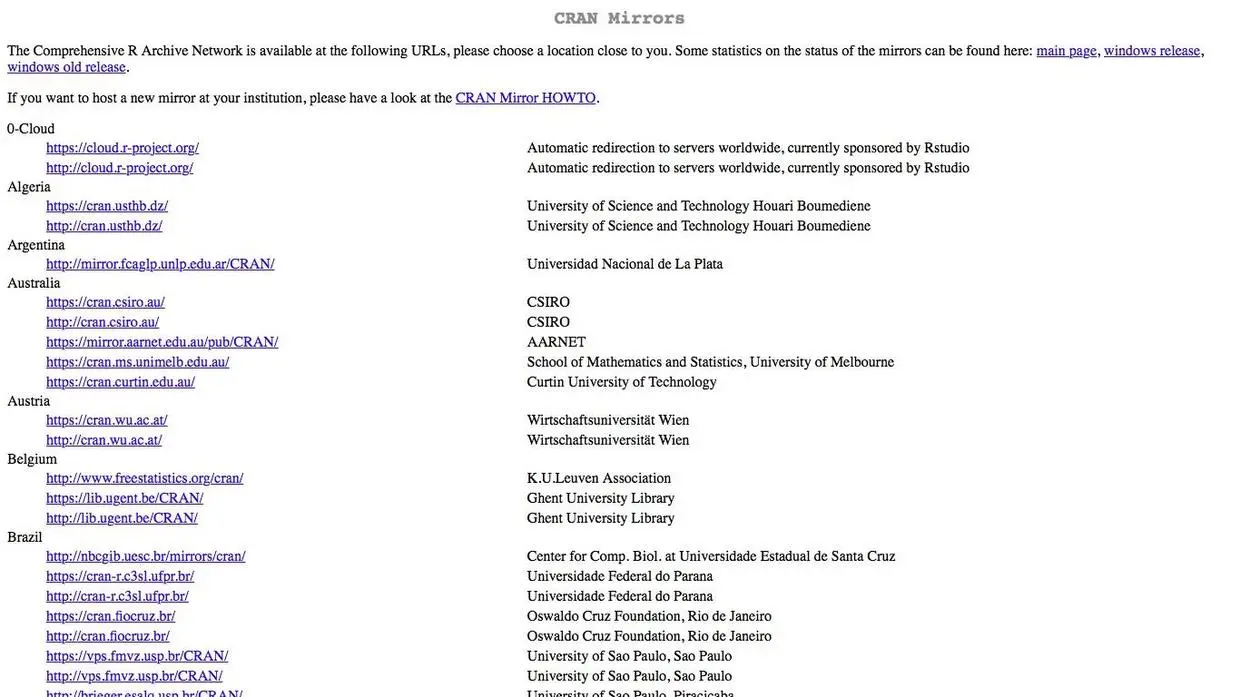 到这个网址下载R基础安装包。你会看到R的下载位置有很多。