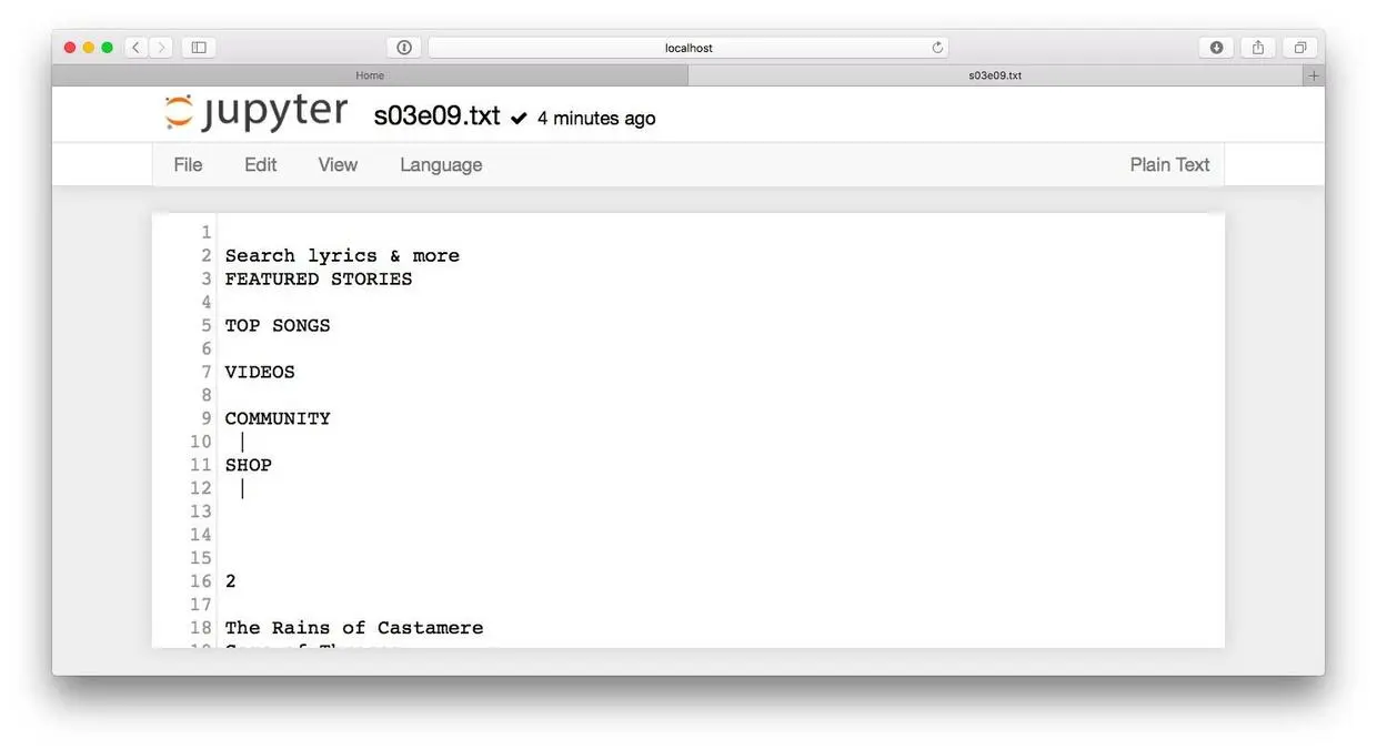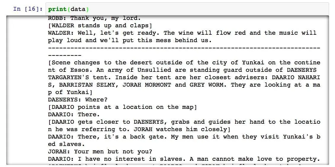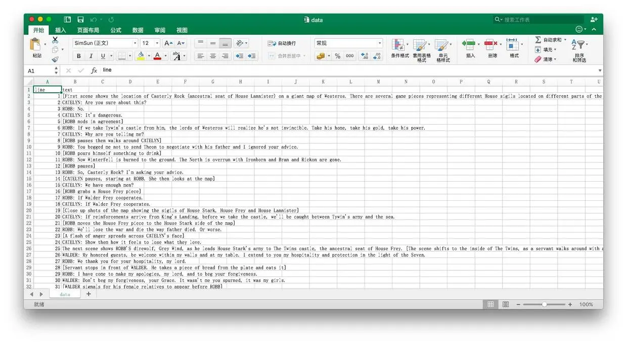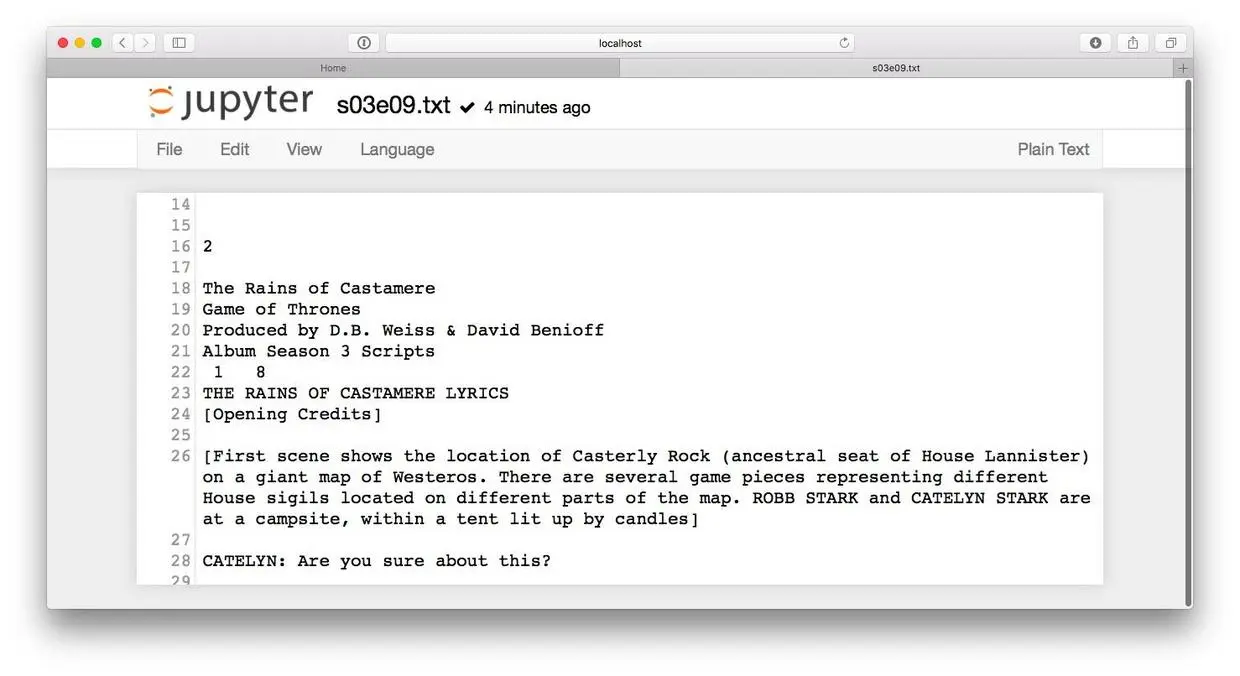我们首先需要找到的是来源数据。作为例子,我们选择了《权利的游戏》第三季的第9集,名字叫做"The Rains of Castamere"。