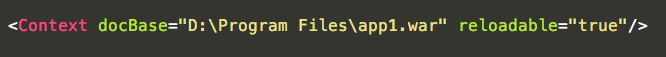 docBase指定了该Web应用使用的WAR包路径,或应用目录。需要注意的是,在自动部署场景下(配置文件位于xmlBase中),docBase不在appBase目录中,才需要指定;如果docBase指定的WAR包或应用目录就在docBase中,则不需要指定,因为Tomcat会自动扫描appBase中的WAR包和应用目录,指定了反而会造成问题。