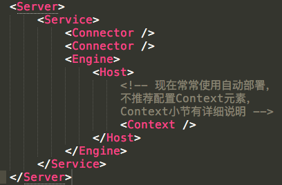 说明:由于server.xml文件中元素与Tomcat中组件的对应关系,后文中为了描述方便,“元素”和“组件”的使用不严格区分。