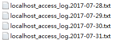 (4)suffix:指定了日志文件的后缀。通过directory、prefix和suffix的配置,在$TOMCAT_HOME/logs目录下,可以看到如下所示的日志文件。